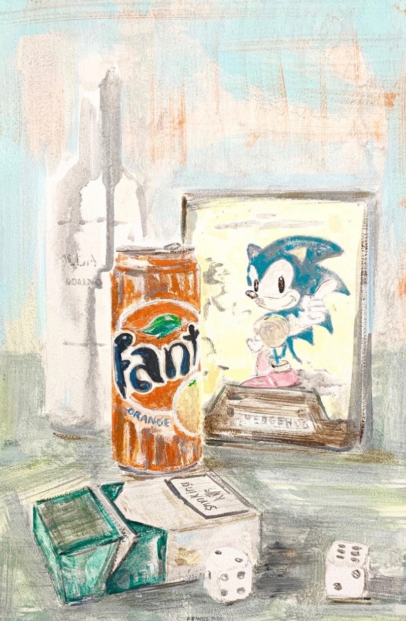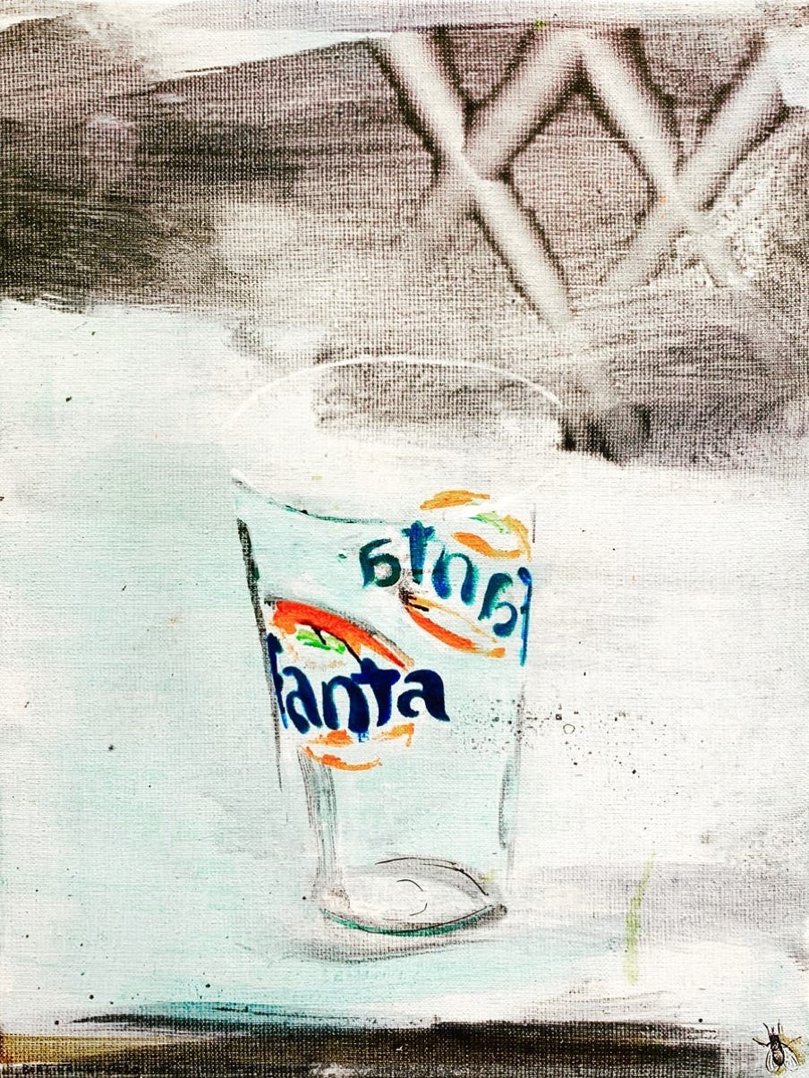 Fanta with Fly (2020) acrylic on canvas, 40 x 30 cm,